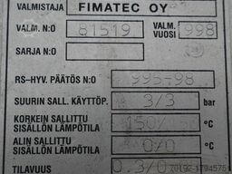 Containerinhoud 300 liter Vacuüm 1,0 bar Max. Max. overdruk 3,0 bar Max. toelaatbare bedrijfstemperatuur 150 °C Bovenste schap Bovenste schap verwijderbaar / scharnierend Ontwerp rechtop Standvorm Poten in hoogte verstelbaar Aantal voeten 3 stuks