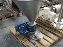 Gebruikte Rotolok (UK) roterend ventiel type 125RVCSS01B met productcontactdelen van roestvrij staal. Inlaat- en uitlaataansluitingen hebben een diameter van 127 mm. De rotor is uitgevoerd in PVC, kettingaangedreven via een reductietandwielkast en elektromotor van 0,37 kW, 1380 tpm, 220-415V, 50 Hz. Werktoerental tot 25 tpm. Capaciteit afhankelijk van product/toerental, tot 1,3-1,9 m3/u. Ventiel is voorzien van een conische trechter van RVS met een inwendige diameter van 670 mm en veiligheidsstangen. Het ventiel is gebout op een RVS draagplaat. Laatst gebruikt in de voedingsmiddelenindustrie.
