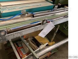 met linksdraaiende cirkelzaag zwenkbaar tot 45° zaagmaat 2200 x 2500 mm 3 motoren met elk 4,5 kW beide afkortzagen zwenkbaar tot 45° - 90° met elk een voorritsmotor alle 3 zagen tot 400 mm D kleinste zaagbreedte 210 mm beide voorritszagen pneumatisch voor- en achteruit met vacuümzuignappen voor plaatfixatie