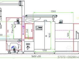 Lengte: 5650 mm, breedte: 2960 mm, hoogte: 1850 mm, met documentatie, zonder hefinrichting en rollenbaan, een inspectie ter plaatse is mogelijk.
